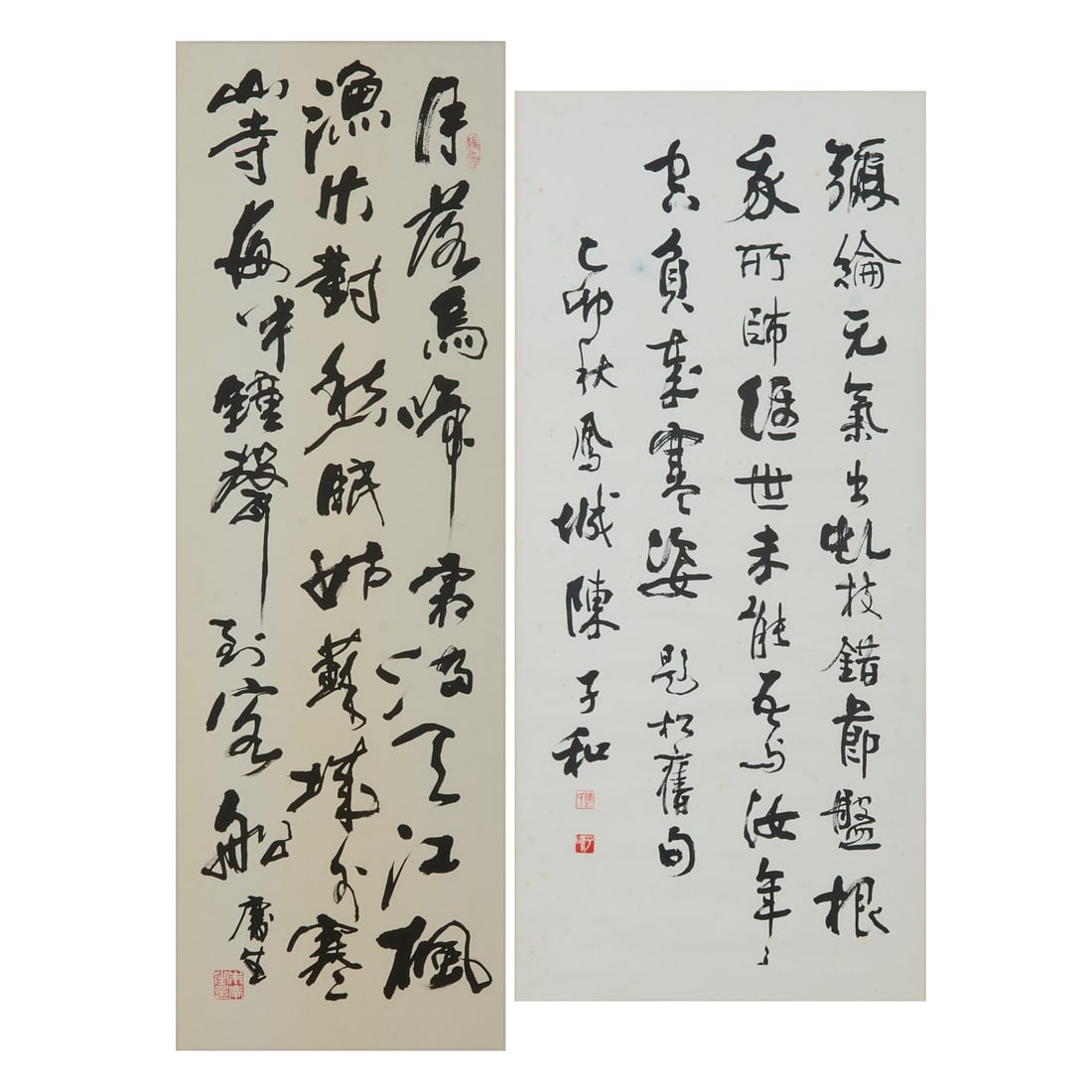 Two Chinese Calligraphy Panels by Chen Zihe.