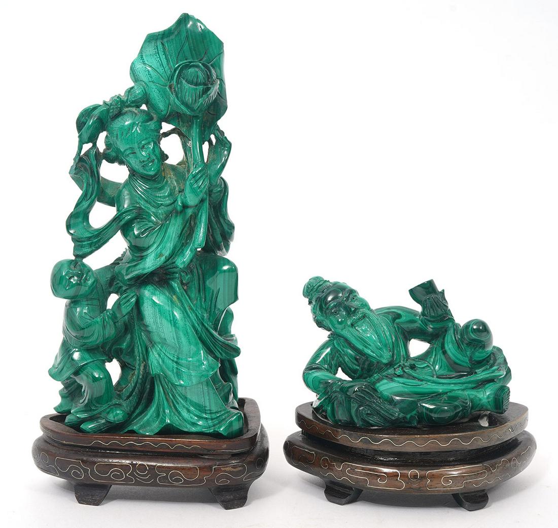 Two Chinese Carved Malachite Figures