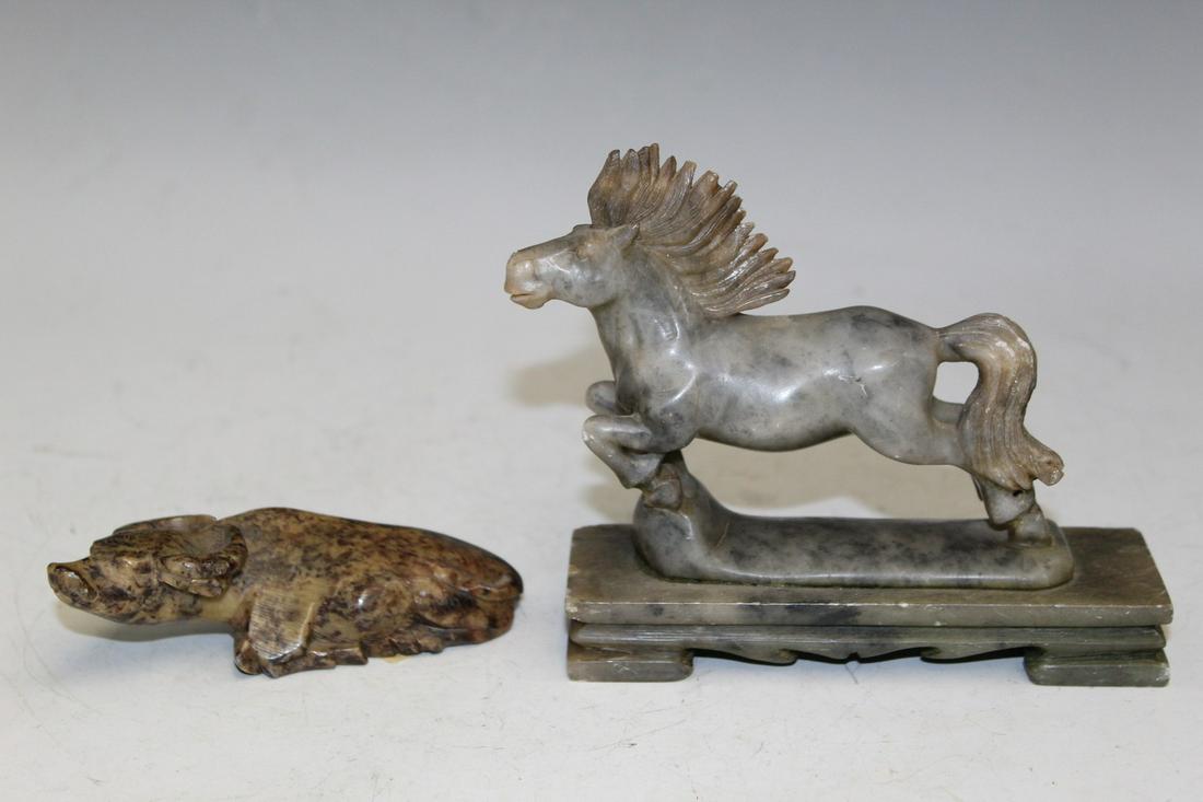 Two Chinese Carved Soapstone Animals