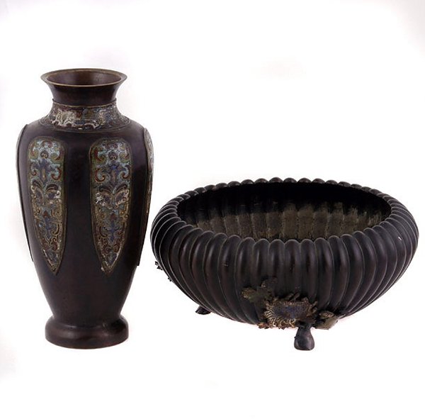 Two Chinese Champleve Enamel Vases