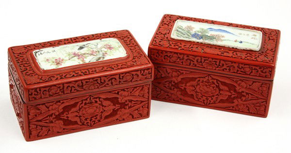 Two Chinese Cinnabar Lacquer Boxes/Inlaid Plaques