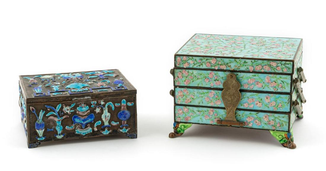 TWO CHINESE CLOISONNE ENAMELED BOXES