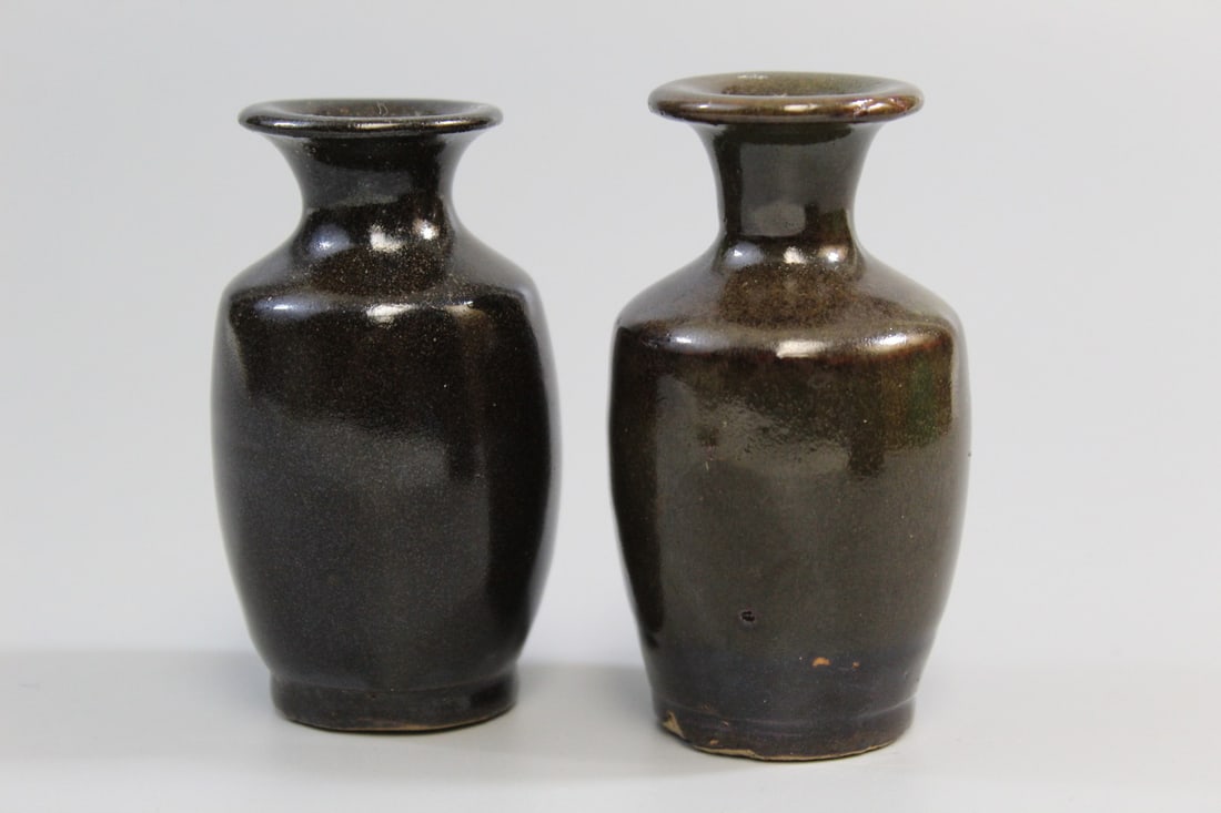 Two Chinese Dark Glazed Pottery Vases