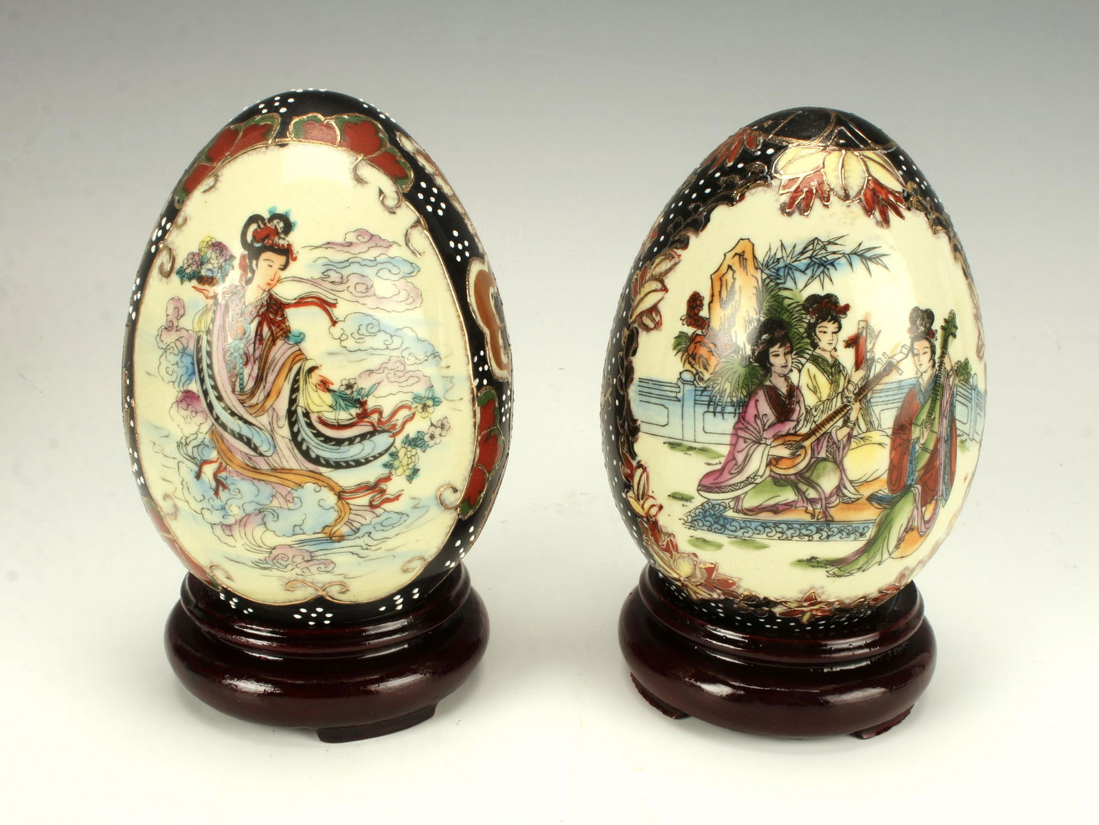 TWO CHINESE DECORATED PORCELAIN EGGS