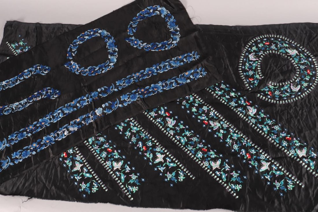Chinese Black Satin Uncut Embroidered Borders,