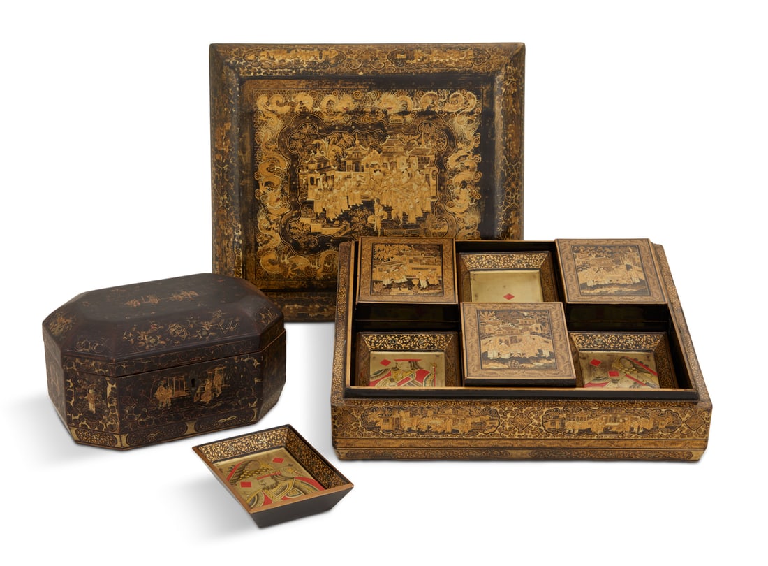 Korean Lacquer MOP Shell Inlay Boxes & Tray 3p LOTFeb 26, 2026(5) JAPANESE BLACK LACQUER PAINTED TABLE BOXESFeb 21, 2026(2) JAPANESE LACQUERED MOTHER-OF-PEARL INLAID TABLE BOXESFeb 21, 2026(4) JAPANESE LACQUERED TABLE BOXES, 1 WITH MOP INLAYFeb 20, 2026Chinese Export gilt lacquer gaming boxFeb 20, 2026Two Chinese Export Black Lacquered and Gilt Decorated Boxes2 days LeftThree Victorian Tunbridge Ware BoxesFeb 21, 2026Chinese & Japanese Red Lacquer Boxes, 3Apr 14, 202619TH C. CHINESE EXPORT LACQUER TEA CADDYFeb 21, 2026Two Asian Wood BoxesFeb 26, 20263 Late 19th Century Chinese Lacquered Storage BoxMar 03, 2026Three Antique English BoxesFeb 19, 20263 English Boxes & Erhard & Sohne Bronze Box, 19th CFeb 25, 2026A Chinese Stacking Lacquer Box3 days LeftA Set of Two Oriental Lacquer BoxFeb 22, 2026Vintage Chinese Wooden Jewelry Box with Brass Mounts, Shanghai5 days Left