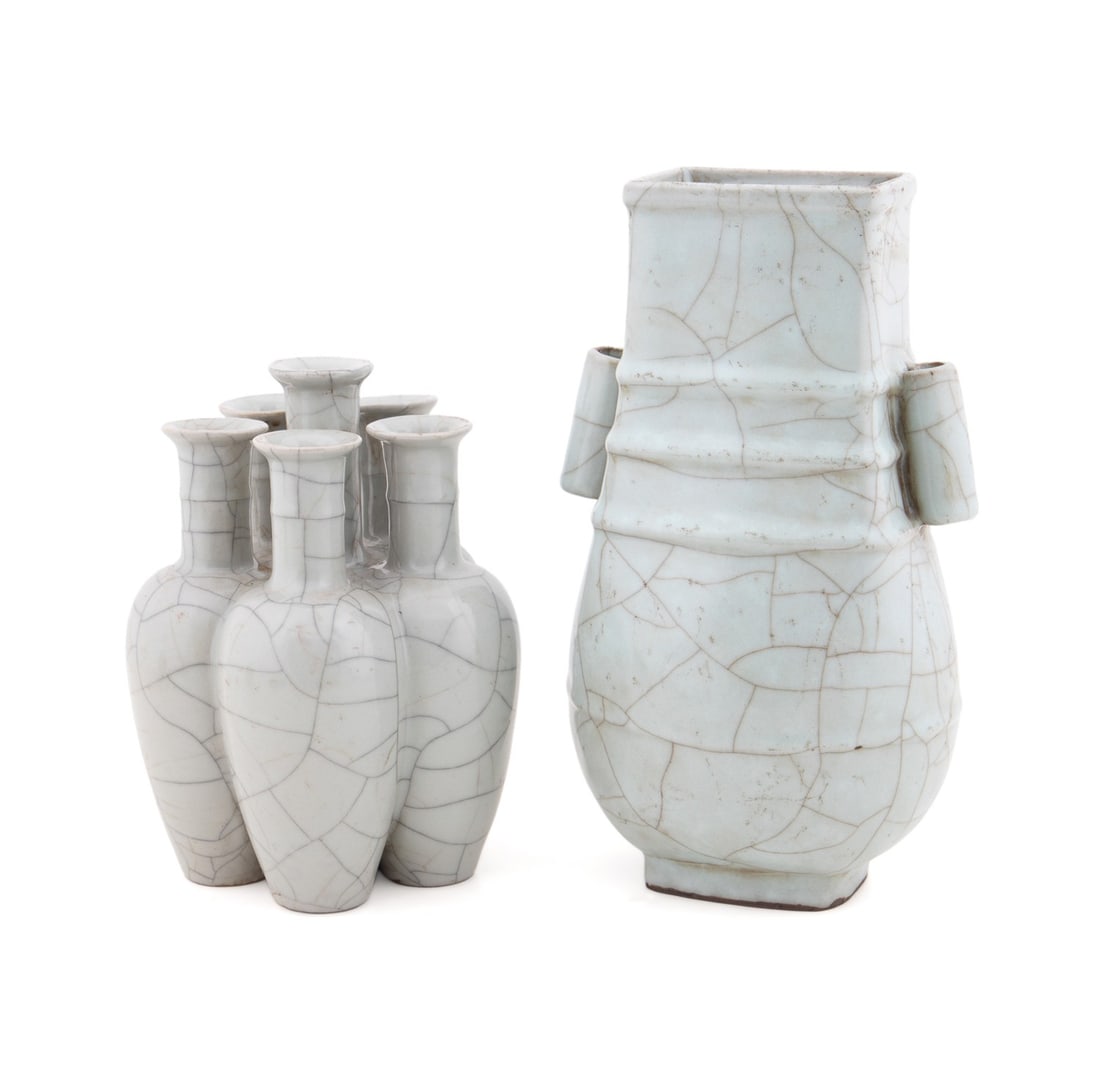 TWO CHINESE GE-TYPE CRACKLE-GLAZED VASES