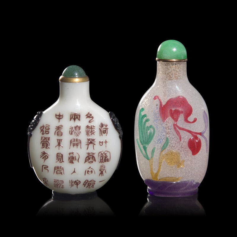 Two Chinese Glass Overlay Snuff Bottles