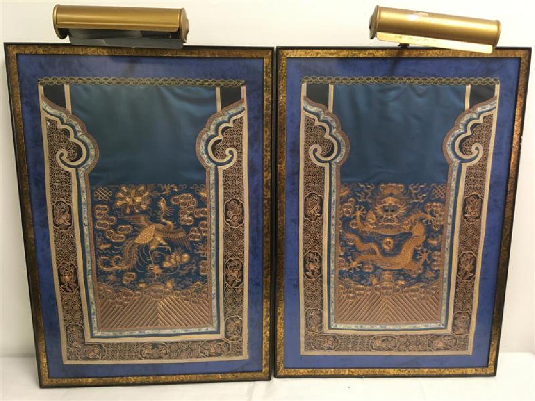 TWO CHINESE GOLD THREADED EMBROIDERED TAPESTRIES