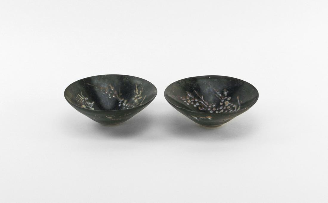 Pair Antique Japanese Tenmoku Jian Tea Bowls