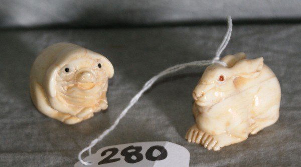 Two Chinese marine ivory netsuke animals.