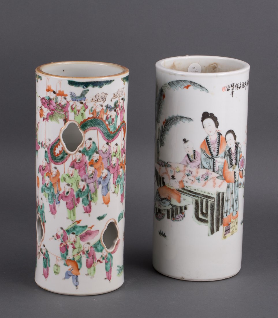 SoldLot of Two Chinese Porcelain Hat VasesLot of Two Chinese Porcelain Hat Vases. 1st - H 29cm, D 13cm; 2nd - H 28cm, D 12cmSee Sold Price