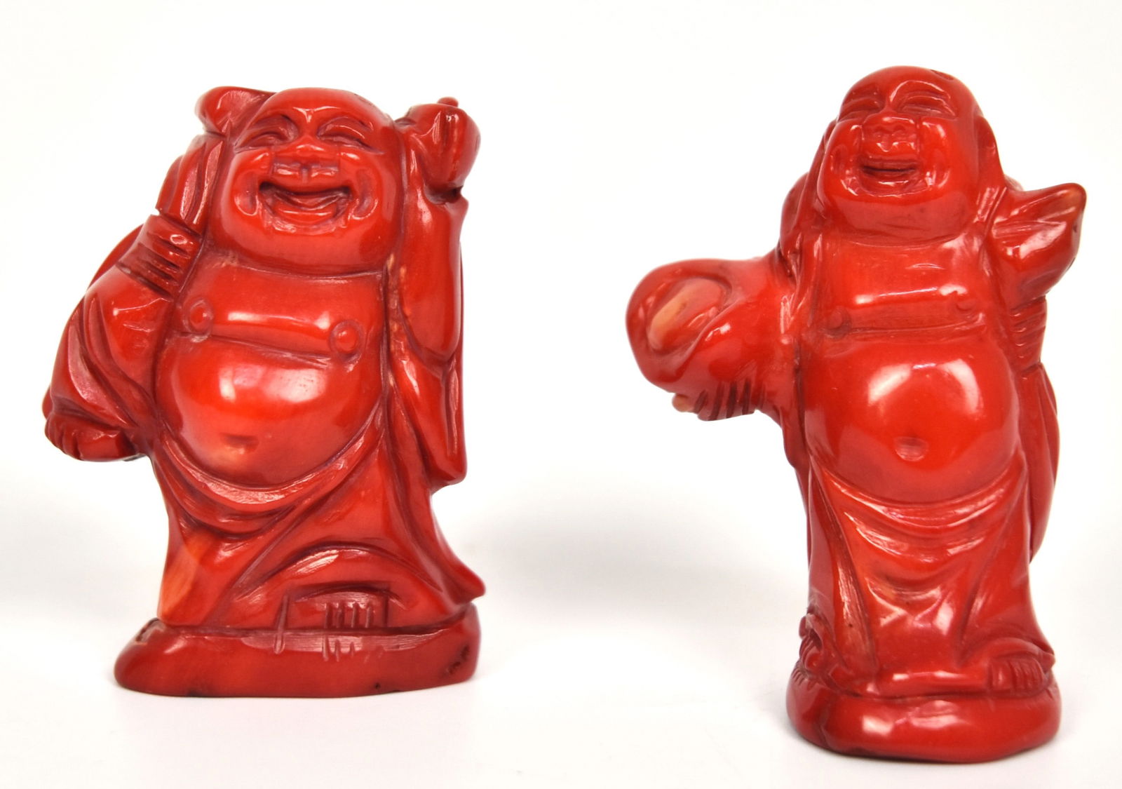 Two Chinese Red Coral Buddha
