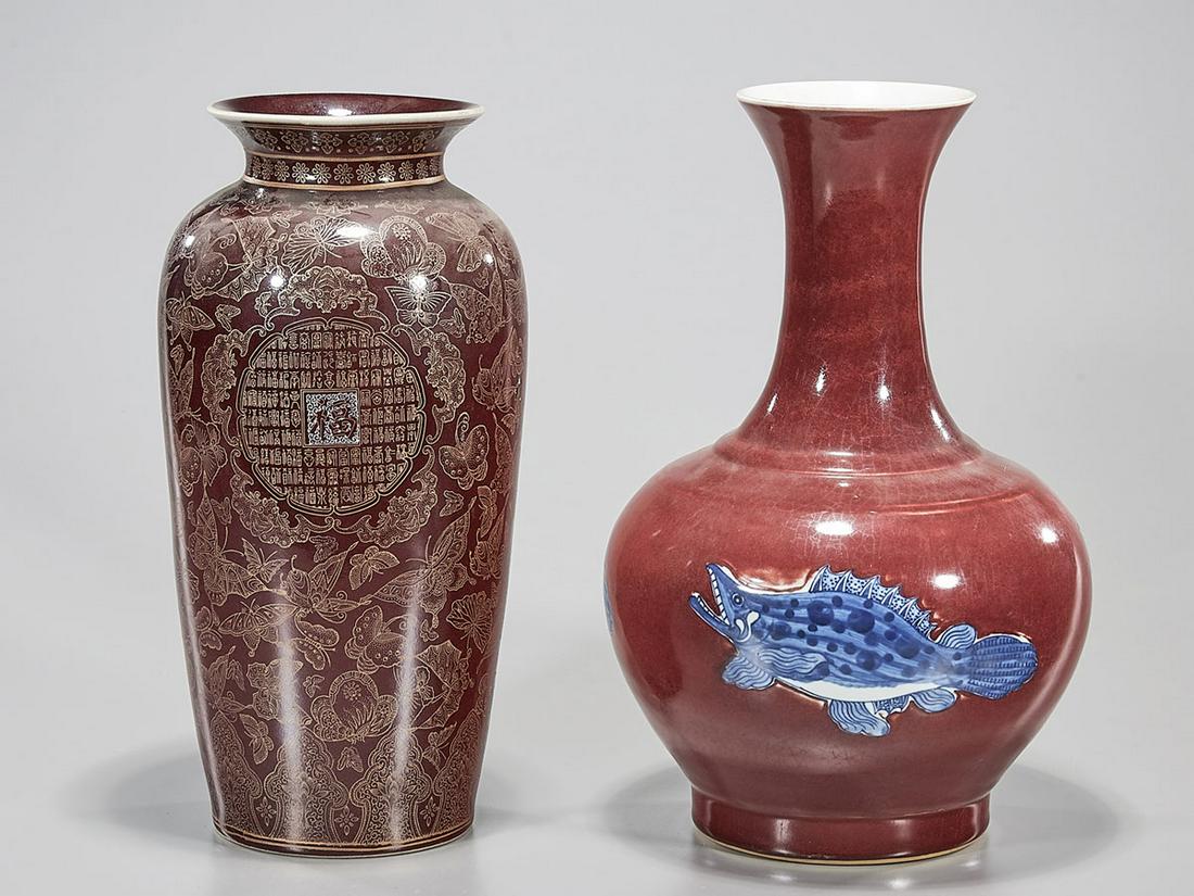 Two Chinese Red Porcelain Vases