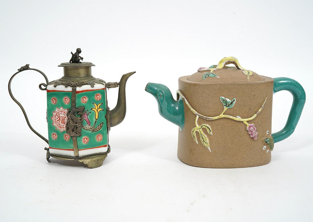 Chinese Cloisonne Porcelain Teapots w/ Lids 2pc