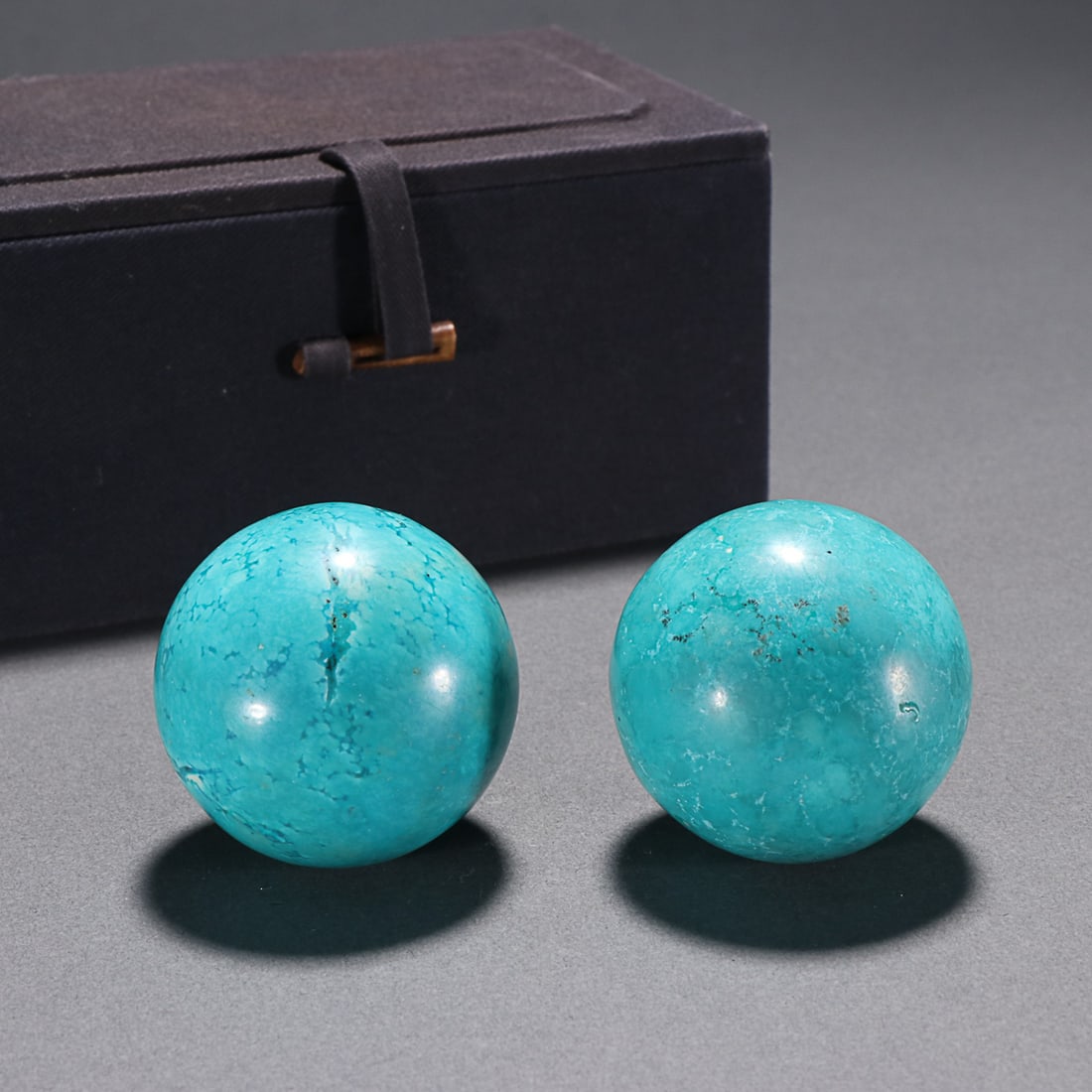 TWO CHINESE TURQUOISE STONE HANDPIECES