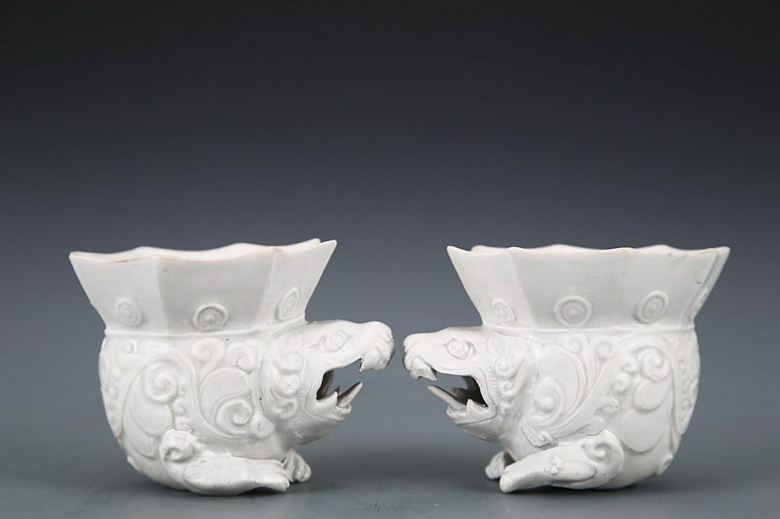TWO CHINESE XING-WARE BEAST-FORM CUPS