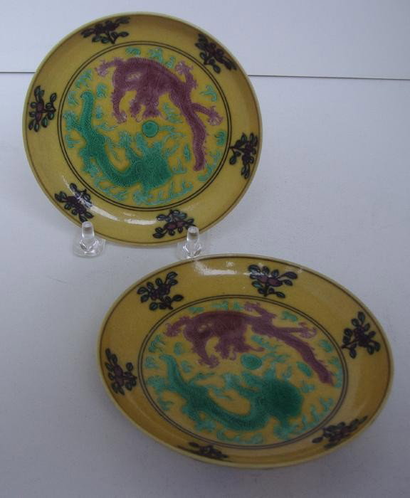 Two Chinese Yellow Glazed Dishes, signed