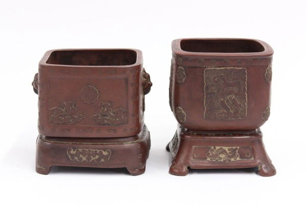 Two Chinese Yixing Planters and Stands