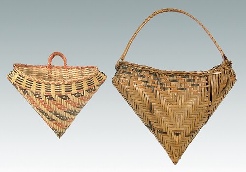 Two Chitimacha pointed wall baskets