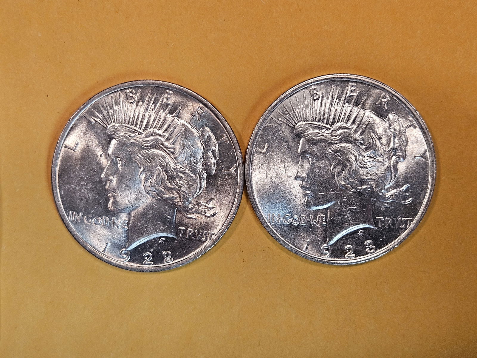 Two Choice Brilliant Uncirculated Peace Silver Dollars