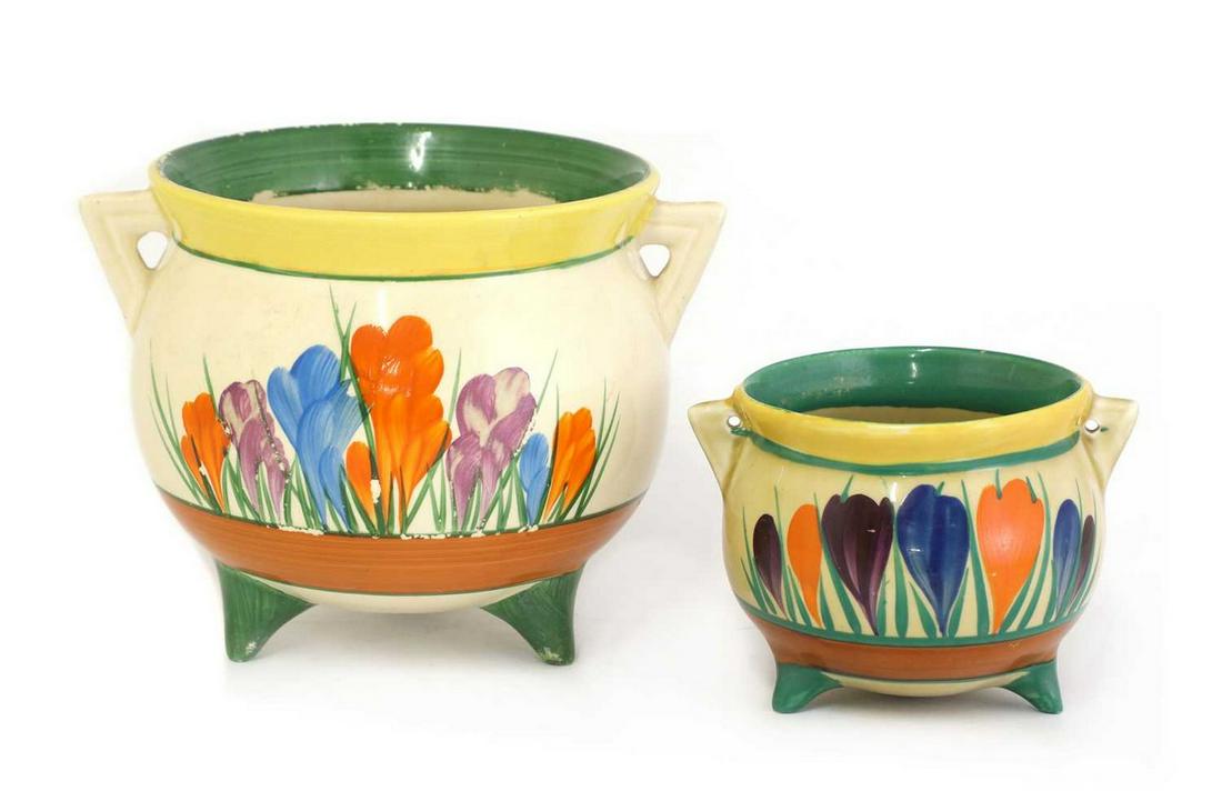 Two Clarice Cliff 'Autumn Crocus' pattern cauldrons,