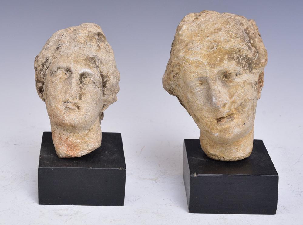 Two Classical Lime Stone Carved Heads