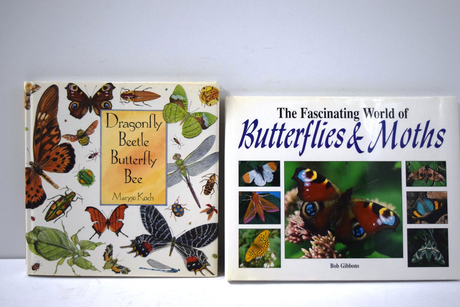 Two color text Lepidopterology: Dragonfly, Beetle,