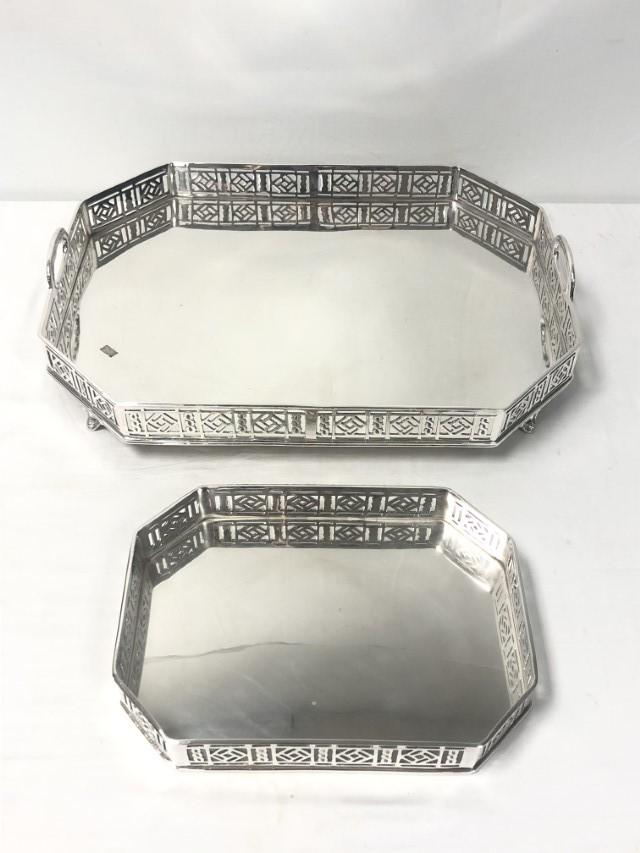 TWO CONTEMPORARY SILVER PLATED SERVING TRAYS