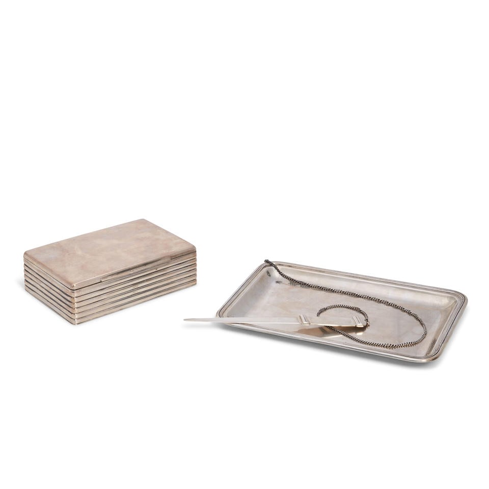 Lot of 2 Vintage Cigarette Lighters: Maruman Cortina Silver-Plated Lighter & Unbranded Gold ToneMar 01, 2026(2 pc) Vintage Dunhill Rollagas Lacquered and Silver LighterFeb 25, 2026Gorham Mfg. Co. American Art Deco Silver Box No. 713Feb 26, 2026Continental Silver Cigarette Case and a Match CaseFeb 24, 2026Two Silver Cigarette CasesFeb 24, 2026Modern Silver Plate Serving Tableware, 2 Pcs.Mar 12, 2026CHRISTOFLE, A PAIR OF FRENCH ELECTRO-PLATED TASTES DU VINS4 days LeftTwo Sterling Silver Boxes and a Tortoiseshell BoxFeb 24, 2026Two Sterling Desk Articles7 days LeftA silver double tiered cigarette box Asprey & Co Ltd, London 1919A silver cigarette box, Birmingham, 1944THREE SILVER MOUNTED TABLE BOXES4 days LeftA Puiforcat sterling silver 'Royal' flatware serviceMar 03, 2026Cartier Sterling Silver Articles, 2Apr 07, 2026Vienna circa 1920, later retailed by Hermes An early 20th century 900 standard silver cigarette case5 days LeftA Group of TobaccianaFeb 25, 2026