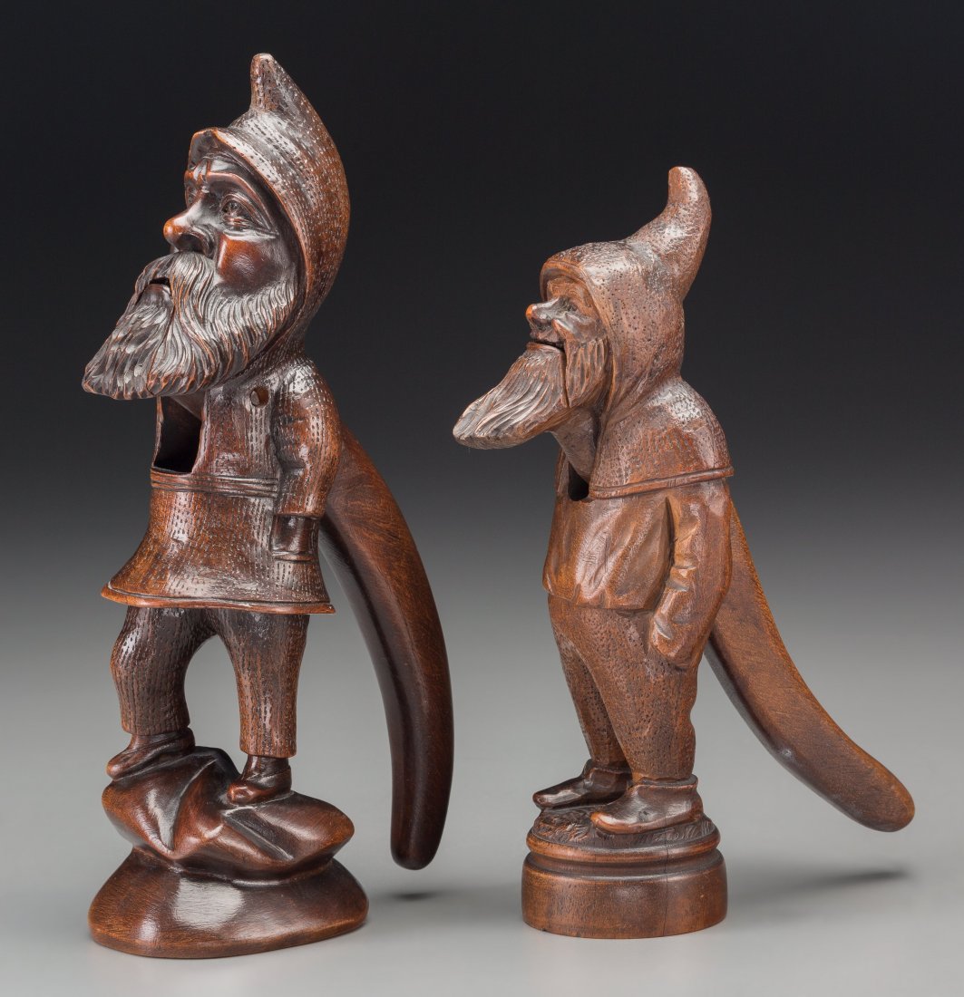 Two Continental Carved Oak Comical Dwarf-Form Nu