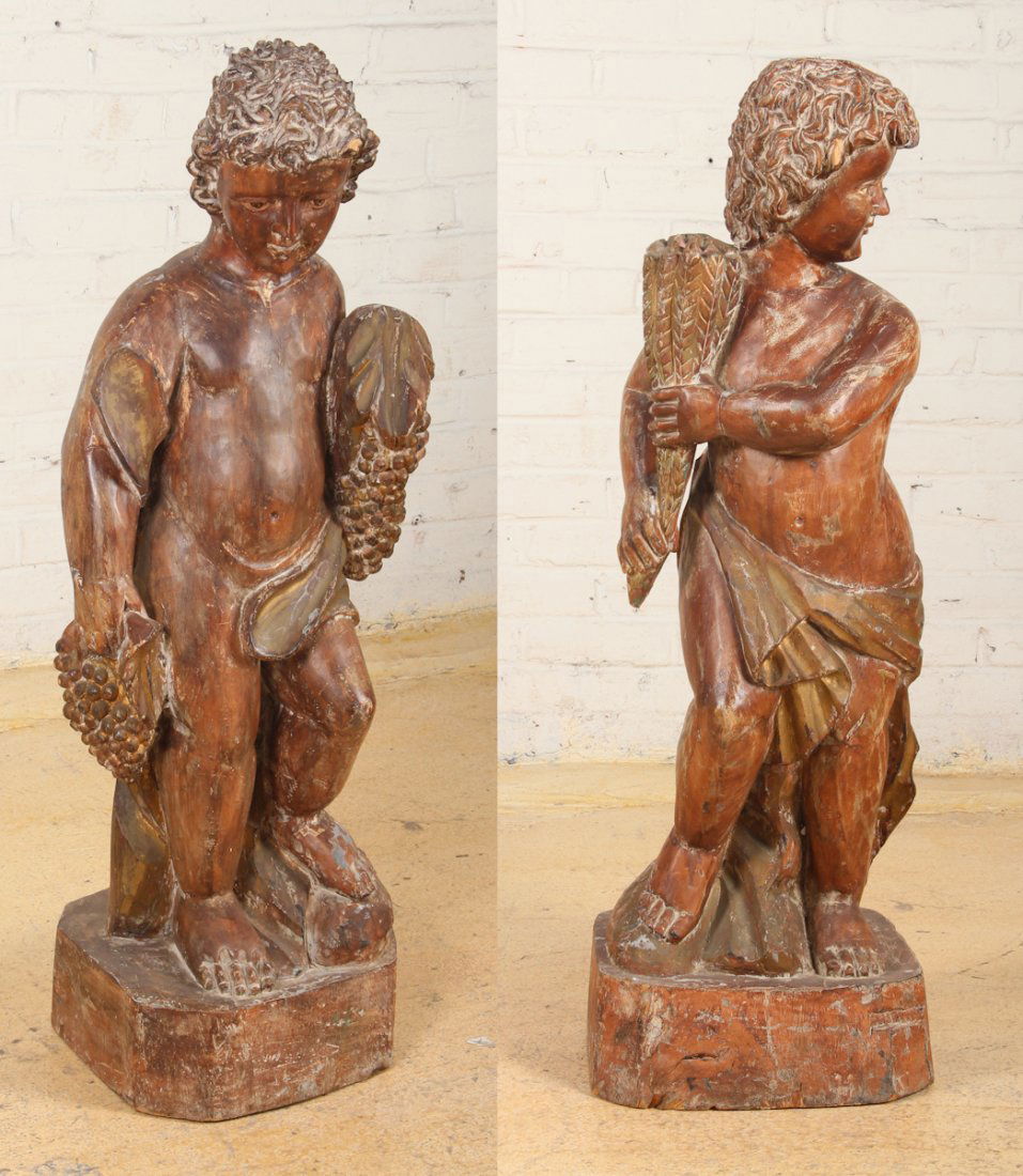 Two Continental Carved Wood Cherubs