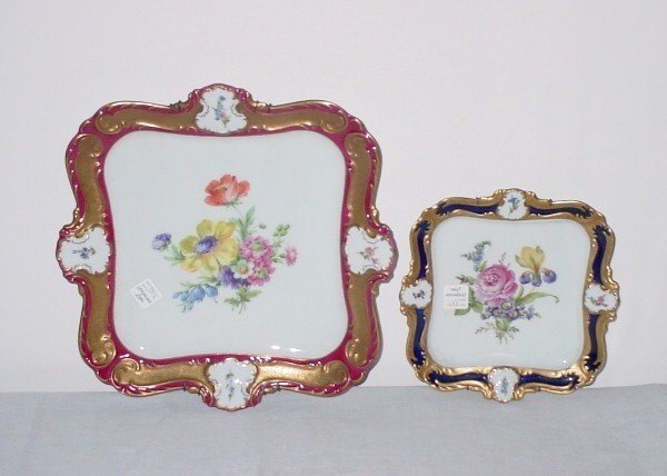 Sold(2Pc) Limoges Porcelain Pill BoxesDESCRIPTION: Two Limoges porcelain square hinged boxes. Each hand painted on the lid and sides. One is painted with green leaves over a gold polka-dot background, finished with a floral-form clasp. ThSee Sold Price