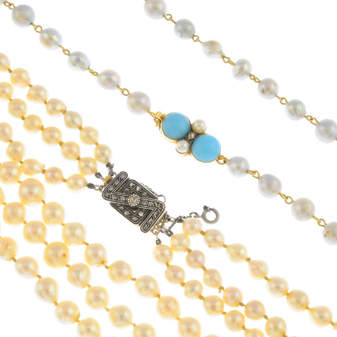 Two cultured pearl necklaces. To include a three-row