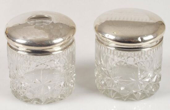 Two cut glass dressing table jars with
