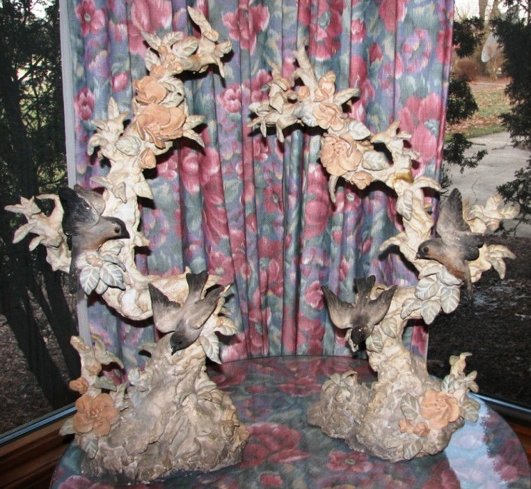 Two Cybis Birds on Branches Statues