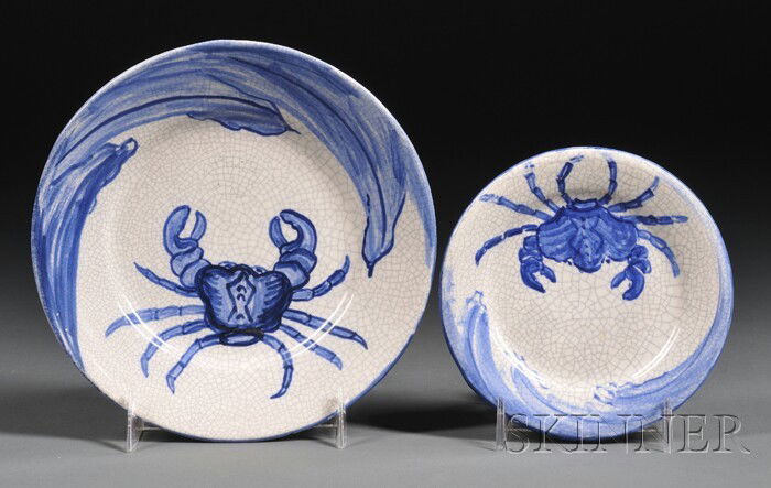 Two Dedham Pottery Crab Decorated Plates Glazed ear