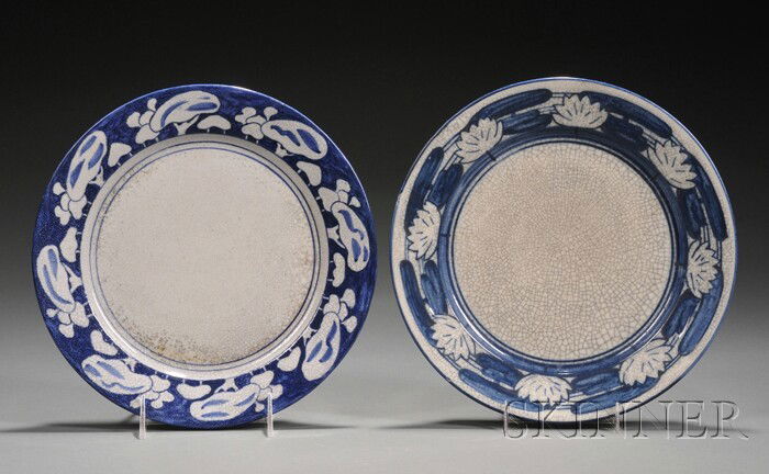 Two Dedham Pottery Dinner Plates Decorated earthenw