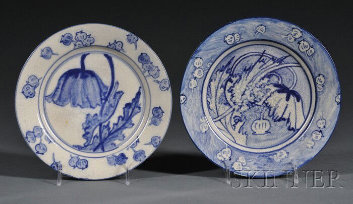 Two Dedham Pottery Poppy Plates Glazed earthenware