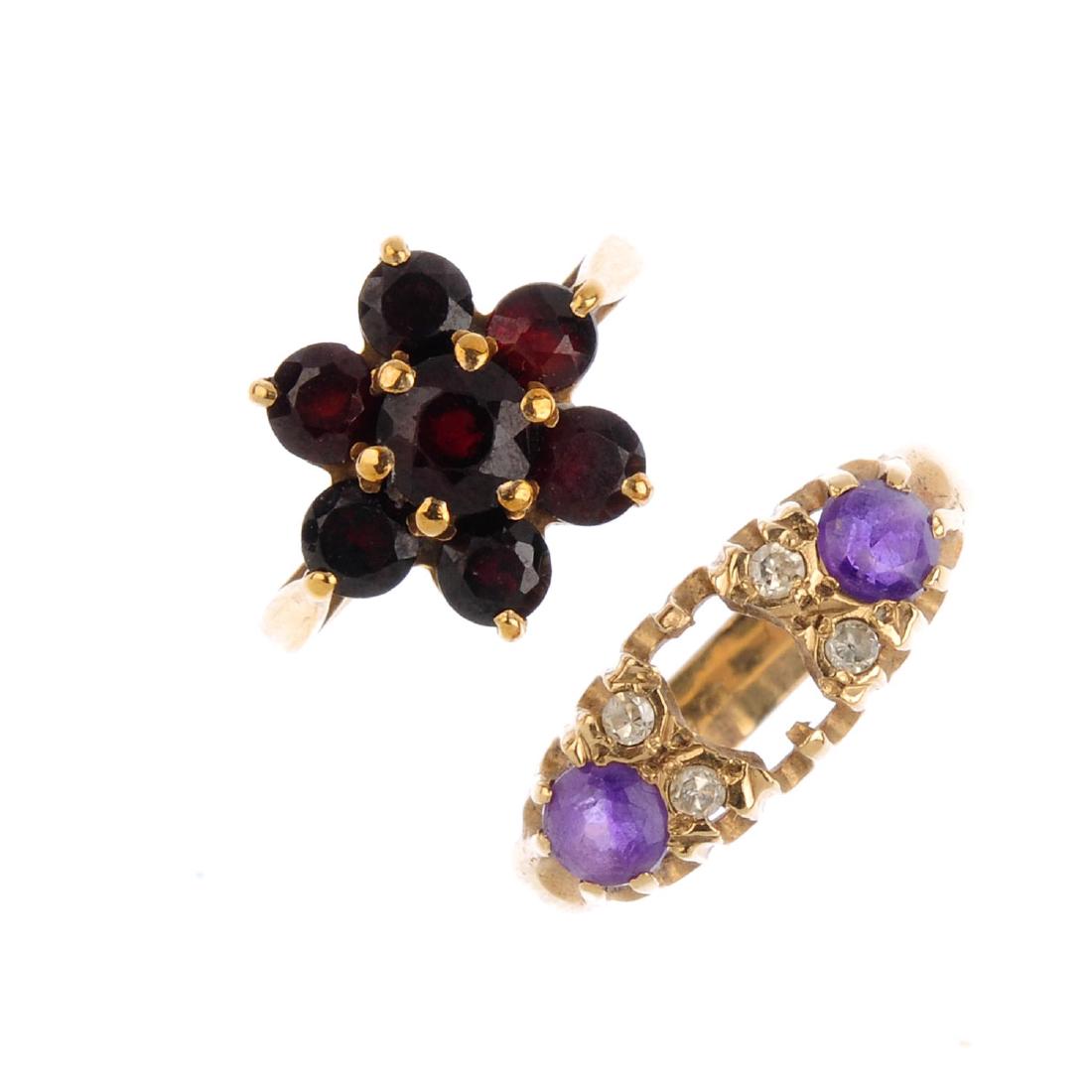 Two diamond and gem-set rings. To include a garnet