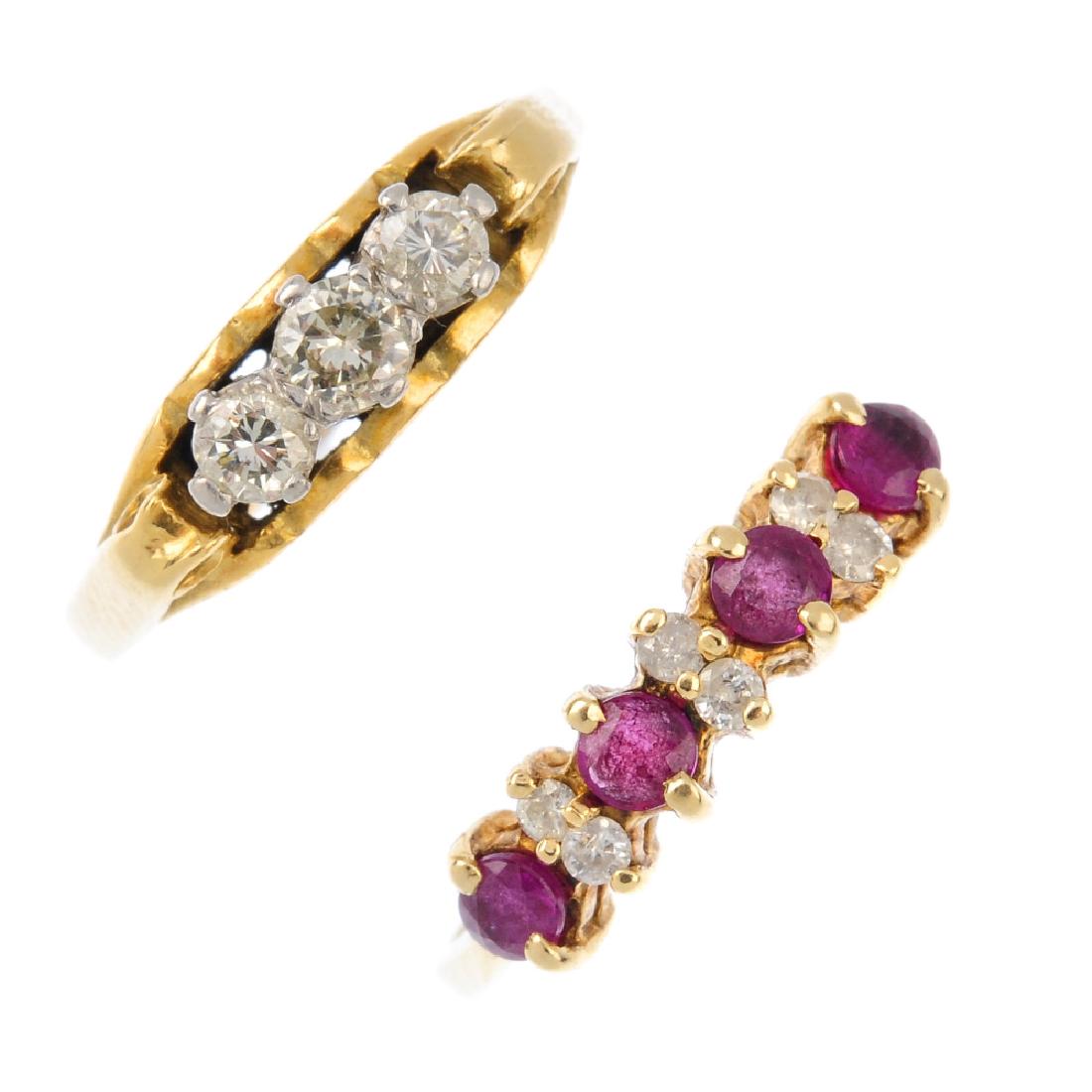 Two diamond and ruby rings. To include a 9ct gold