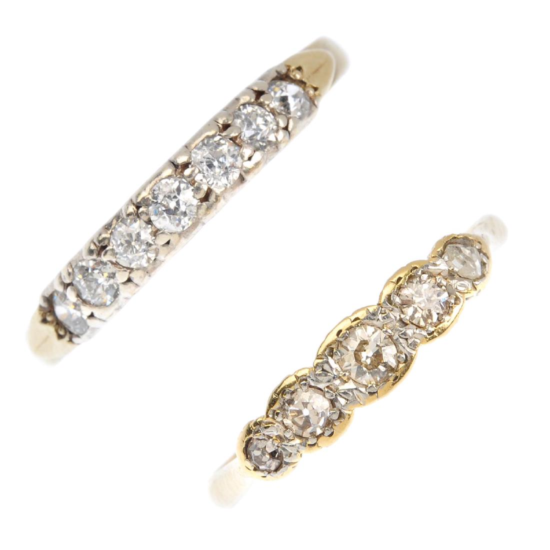 2 gold diamond rings. 1) 18K gold diamond pave ring. Set with 3 rows of graduated square cutTremont Auctions4.6(313)$300Mar 01, 2026