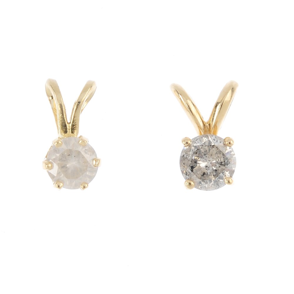 Two diamond single-stone pendants. Each designed as a