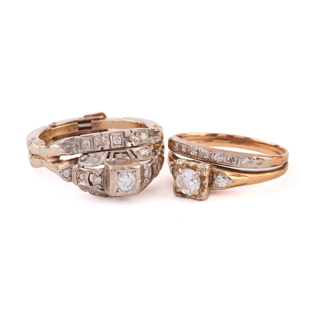 Two Diamond, Yellow and White Gold Wedding Ring Sets.
