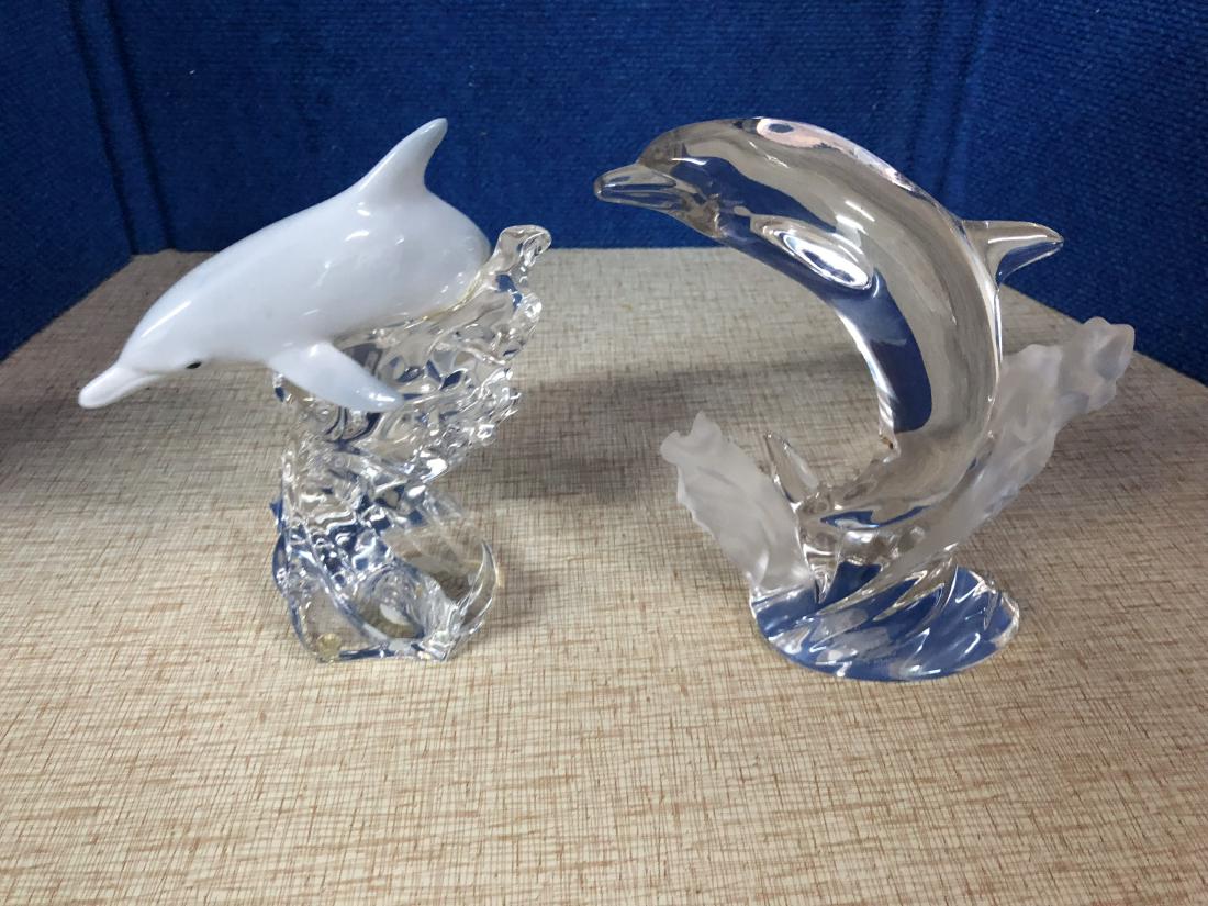 Two Dolphin Crystal Statues