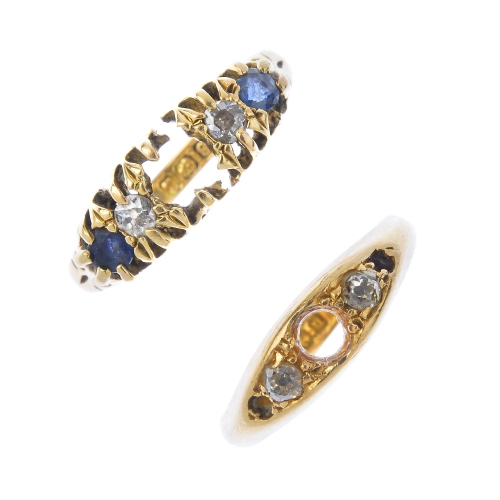 Two early 20th century 18ct gold ring mounts.