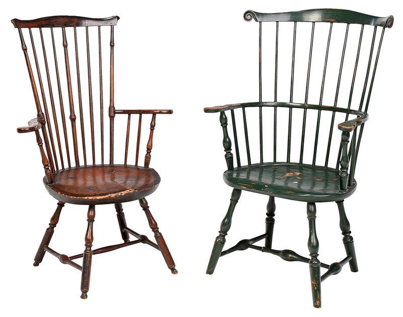 Two Early American Windsor Arm Chairs