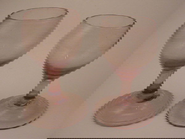Two Early Blown Glass Wine Goblets. Light amethys