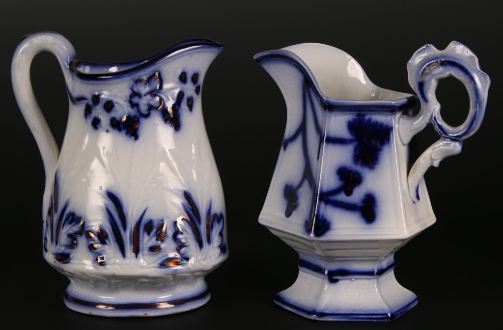 TWO EARLY FLOW BLUE PITCHERS