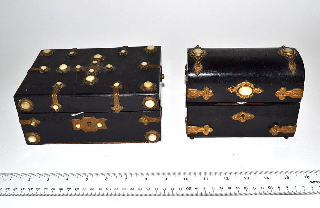 Lot of 2 Antique Boxes6 days LeftLot 2 Boxes Including A HumidorMar 07, 2026Lot of 2 Antique Wood Tool Chests.23 hrs LeftLot: 8 Pcs.- Music Boxes, Marquetry Inlay Trays.23 hrs LeftLot of 2 Antique Wooden Traveling Vanity/Jewelry Boxes6 days Left(5) JAPANESE BLACK LACQUER PAINTED TABLE BOXESFeb 21, 2026(2) JAPANESE LACQUERED MOTHER-OF-PEARL INLAID TABLE BOXESFeb 21, 2026Two Salt BoxesFeb 14, 2026(2) Antique brass inlaid perfume boxesFeb 18, 2026TWO WOODEN BOXES Early 20th Century Lengths 8" and 10".Feb 18, 2026Two Chinese Export Black Lacquered and Gilt Decorated Boxes6 days LeftANTIQUE FEDERAL WOOD & LEATHER DOCUMENT BOX7 days LeftTWO WOOD BOXES, ONE WITH INLAY.Feb 19, 2026Thai Black and Gold Lacquered Table Boxes, 26 days LeftMAHOGANY & BRASS JEWELRY BOX & LACQUERED BOXFeb 19, 2026Antique etui box / case / chest with mother of pearl sewing notions in custom fitted compartments,Feb 21, 2026